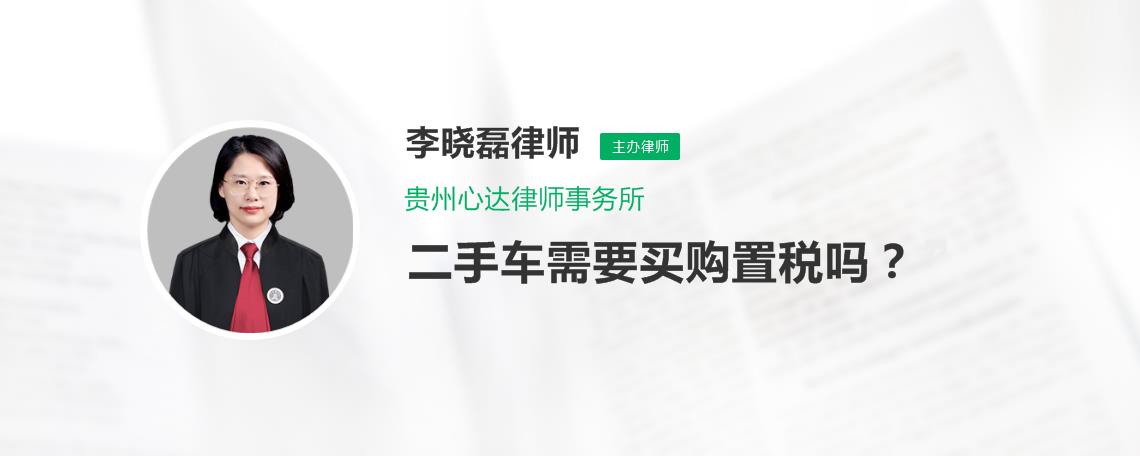 4、法律主观如果新车购买时没有缴纳购置税,交易二手车后,新车主需要补齐购置税部分如果新车购买时缴纳过购置税,二手车车主无需再次缴纳若因转让车辆使车辆不再属于免税减税范围内的,应当缴纳购置税法律客观中华人民。