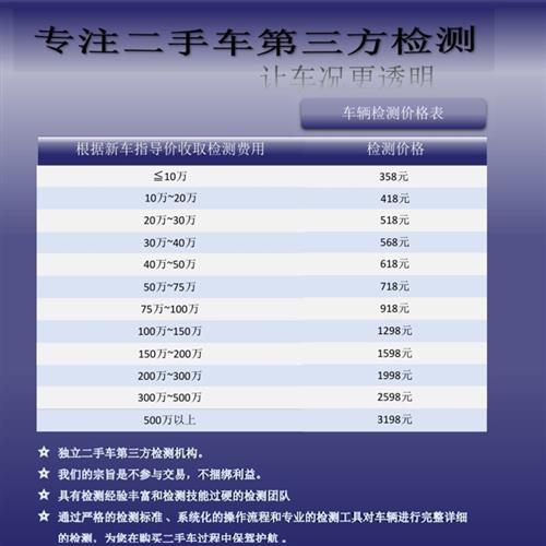 消费者购买二手车时二手车检测机构,应前往专业独立的第三方二手车检测机构进行车辆检测二手车检测机构,第三方二手车检测机构必须具备检测资质检测评估机构必须站在中立客观的第三方角度,不得参与买卖偏袒任何一方隐瞒检测情况或夸大检测事实其次。